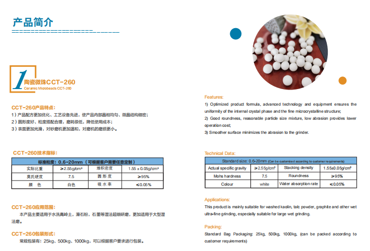 公司生產(chǎn)高強(qiáng)陶瓷研磨介質(zhì)、功能性無(wú)機(jī)顏料、復(fù)合無(wú)機(jī)材料產(chǎn)品三大系列三十多種規(guī)格產(chǎn)品,廣泛應(yīng)用于粉體研磨、阻熱保溫、醫(yī)藥包裝、橡塑強(qiáng)化等領(lǐng)域。