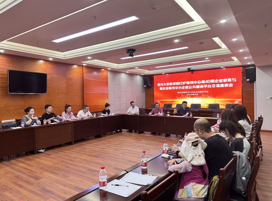 8月5日,四川大學(xué)商學(xué)院EDP培訓(xùn)中心第40期企業(yè)家班與鄂爾多斯市中小企業(yè)公共服務(wù)平臺(tái)開展交流座談會(huì)。
