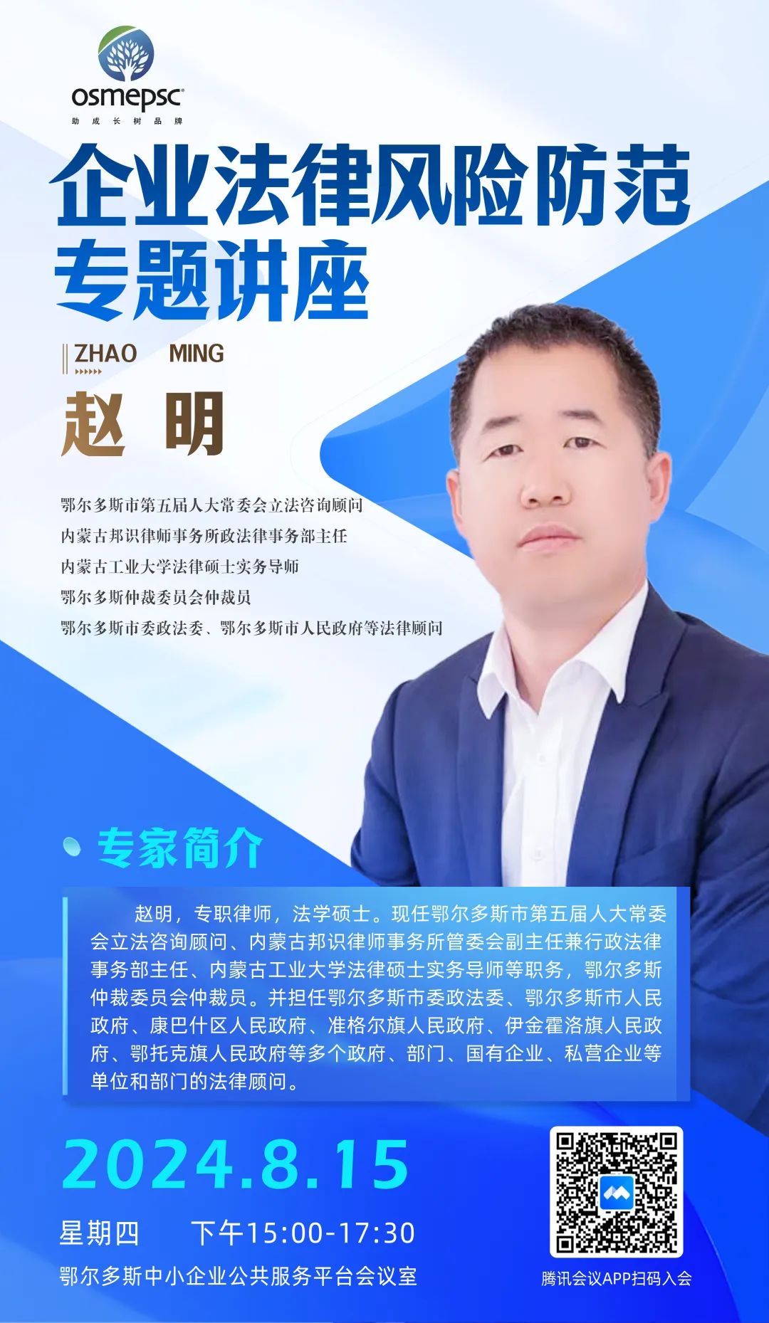 為了幫助企業(yè)構(gòu)建堅(jiān)實(shí)的法律防線(xiàn),確保企業(yè)穩(wěn)健運(yùn)營(yíng),本次“企業(yè)法律風(fēng)險(xiǎn)防范專(zhuān)題講座”旨在增強(qiáng)鄂爾多斯地區(qū)中小企業(yè)的法律意識(shí),幫助企業(yè)高管及法務(wù)人員深入理解并掌握企業(yè)運(yùn)營(yíng)中常見(jiàn)的法律風(fēng)險(xiǎn)點(diǎn),特別是在企業(yè)運(yùn)營(yíng)、合同管理、勞動(dòng)糾紛、知識(shí)產(chǎn)權(quán)等方面的法律防范策略,以促進(jìn)企業(yè)健康、可持續(xù)發(fā)展。