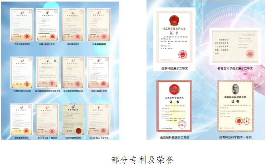 先后獲評(píng)創(chuàng)新型中小企業(yè)、自治區(qū)級(jí)企業(yè)研發(fā)中心、高新技術(shù)企業(yè)、鄂爾多斯市鄉(xiāng)村振興專家人才工作站、鄂爾多斯市科普教育基地。團(tuán)隊(duì)成員主持國(guó)家級(jí)科研項(xiàng)目 20 余項(xiàng), 參與省部級(jí)科研項(xiàng)目 40 余項(xiàng), 在國(guó)內(nèi)外學(xué)術(shù)刊物上發(fā)表了昆蟲信息素相關(guān)研究論文百余篇 , 授權(quán)國(guó)家發(fā)明專利 54 項(xiàng), 榮獲國(guó)家科學(xué)技術(shù)進(jìn)步二等獎(jiǎng)、 梁希林業(yè)科學(xué)技術(shù)一等獎(jiǎng)等國(guó)家級(jí)、 省部級(jí)獎(jiǎng)勵(lì) 8 項(xiàng), 獲得省部級(jí)創(chuàng)新創(chuàng)業(yè)獎(jiǎng) 24 項(xiàng)。公司是國(guó)家農(nóng)業(yè)和林業(yè)有害生物防治一級(jí)資質(zhì)企業(yè)。
