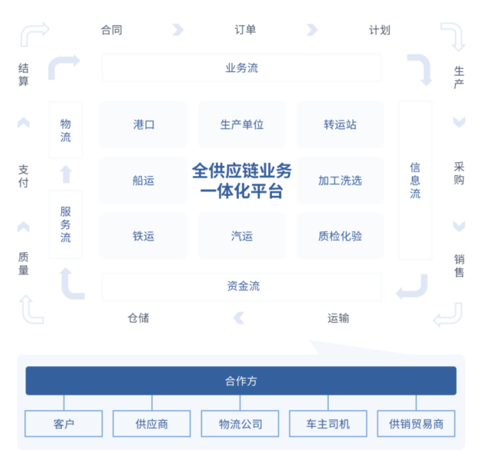 涵蓋煤炭生產(chǎn)、采購、銷售、貿(mào)易、計劃、庫存、配煤、物流運輸、合同訂單、支付結(jié)算、煤質(zhì)化驗等全業(yè)務(wù)場景。