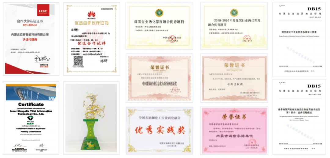 伊泰信息為國家高新技術(shù)企業(yè)、內(nèi)蒙古自治區(qū)“專精特新”中小企業(yè)、內(nèi)蒙古自治區(qū)級企業(yè)研究開發(fā)中心,內(nèi)蒙古自治區(qū)萬戶企業(yè)登云第一批認定服務(wù)商,被中國煤炭工業(yè)協(xié)會評為“兩化深度融合先進單位”,獲評2022煤炭行業(yè)信息技術(shù)企業(yè)20強、鄂爾多斯科技創(chuàng)新50強。