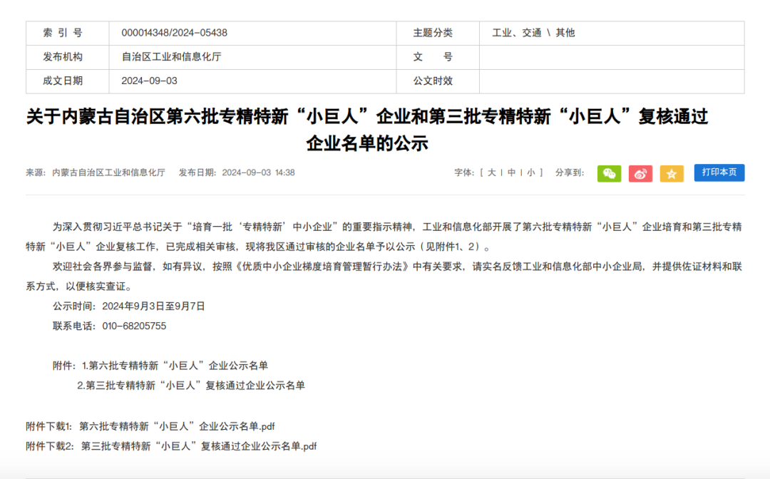 9月3日,自治區(qū)工信廳對(duì)第六批國(guó)家專精特新“小巨人”企業(yè)名單進(jìn)行公示,我市內(nèi)蒙古默銳能源材料有限公司成功入選。