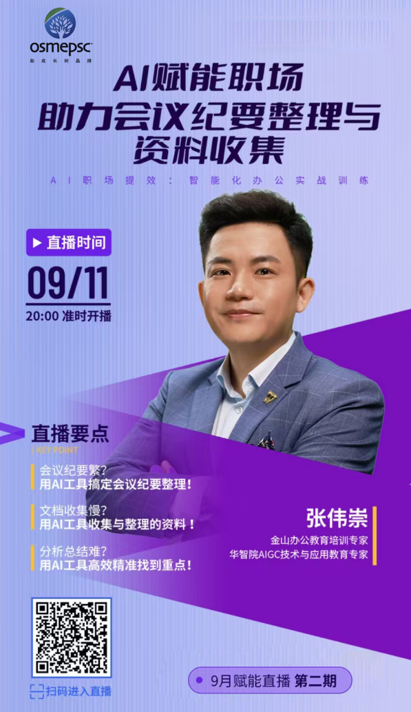 直播主題:AI賦能職場助力會議紀要整理與資料收集
