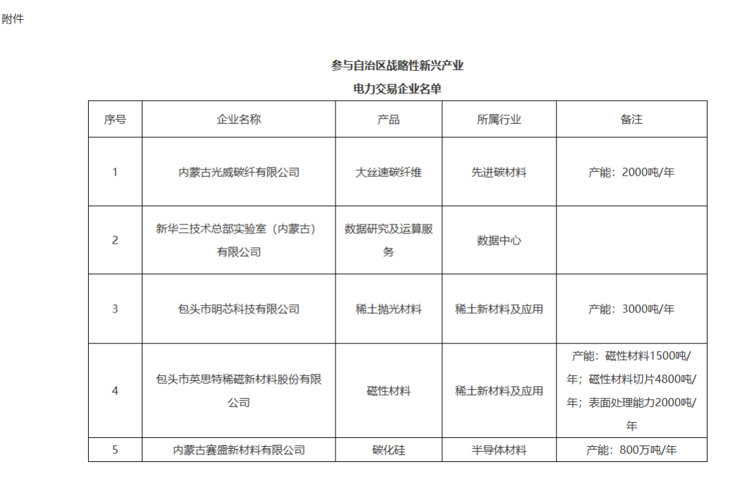 附件:參與自治區(qū)戰(zhàn)略性新興產(chǎn)業(yè)電力交易企業(yè)名單