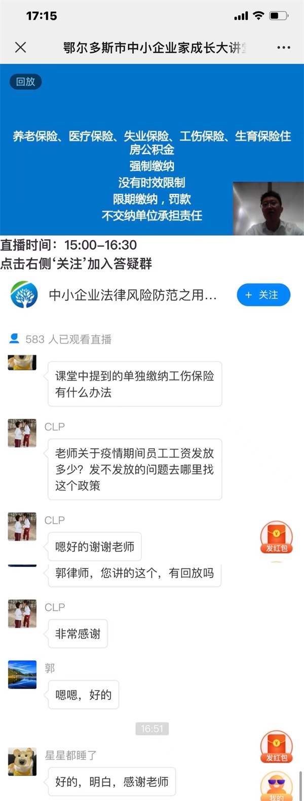4月8日,舉辦鄂爾多斯市中小企業(yè)家成長(zhǎng)大講堂線(xiàn)上智庫(kù)專(zhuān)家服務(wù)月培訓(xùn)第十一期“中小企業(yè)法律風(fēng)險(xiǎn)防范之用工風(fēng)險(xiǎn)”線(xiàn)上公益專(zhuān)題培訓(xùn)。