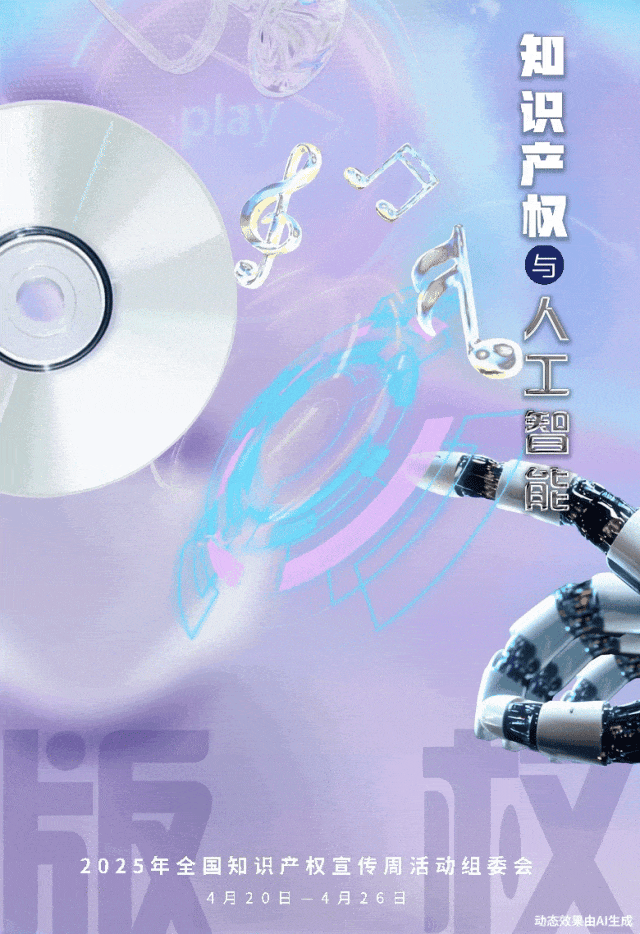 在2025年全國知識(shí)產(chǎn)權(quán)宣傳周活動(dòng)期間,大家期待的海報(bào)如期與您相約。今年宣傳周活動(dòng)的主題為“知識(shí)產(chǎn)權(quán)與人工智能”,宣傳周海報(bào)共一套六張,并在人工智能的加持下首次以動(dòng)態(tài)形式亮相!歡迎“轉(zhuǎn)贊看”,一起“動(dòng)”起來!