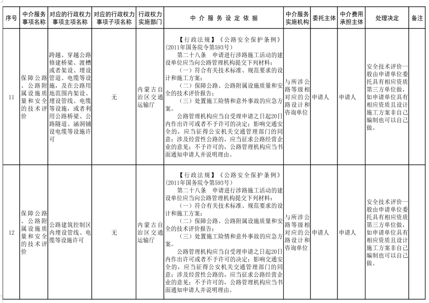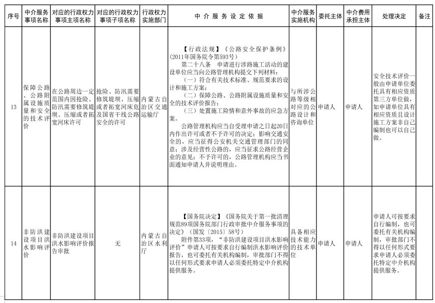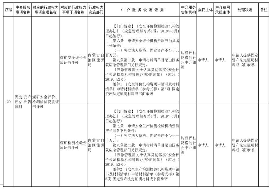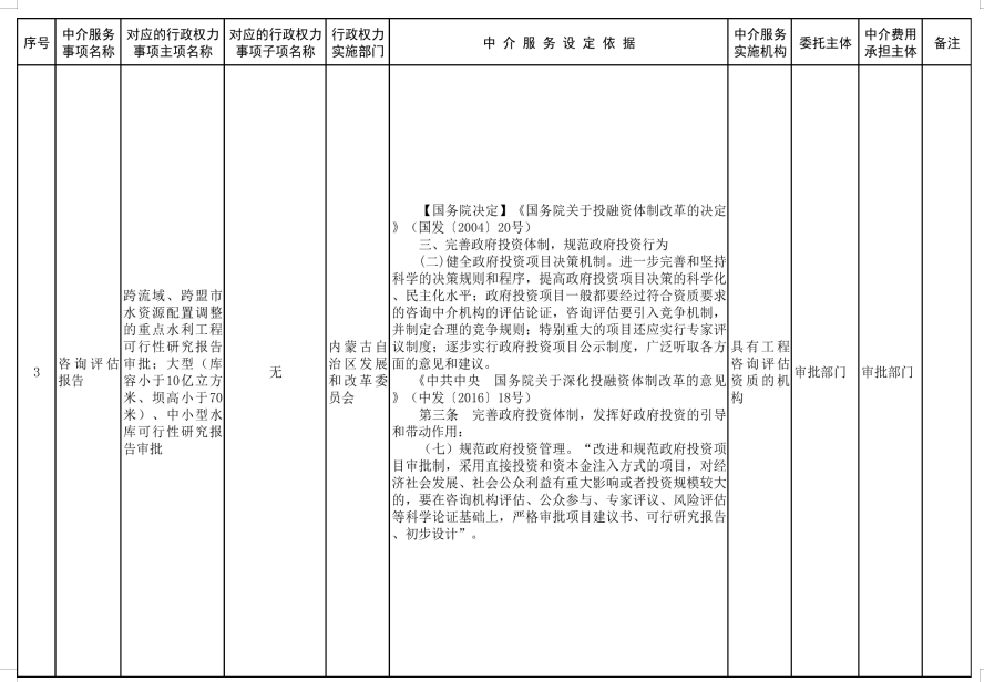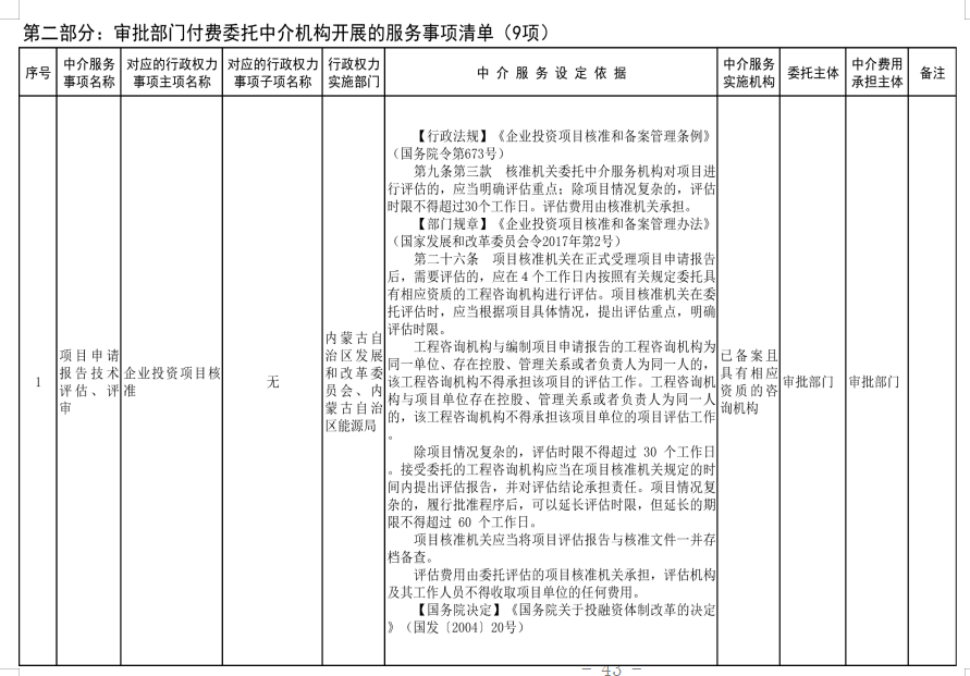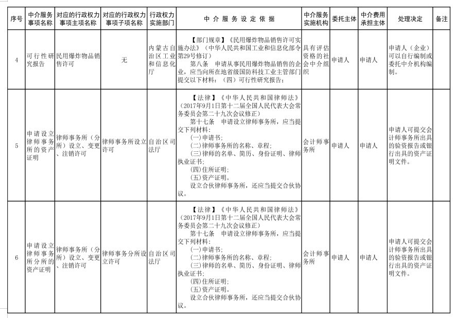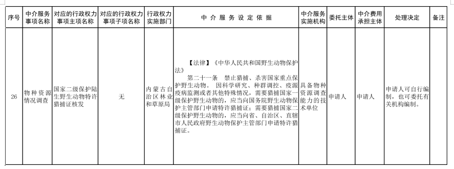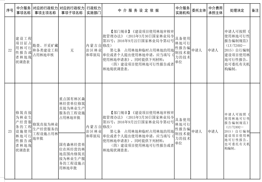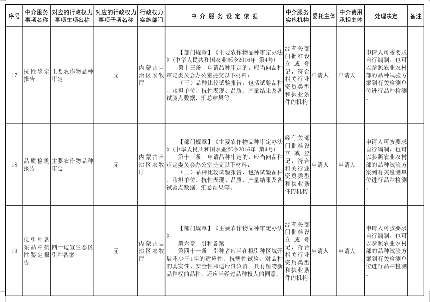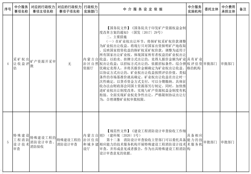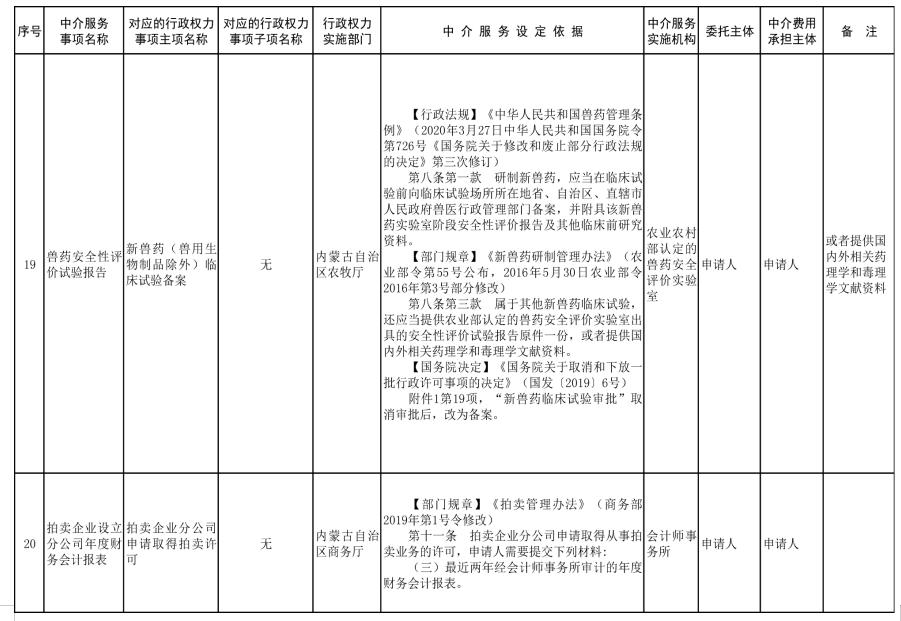 自治區(qū)對本級各部門在實施行政審批、備案等行政權(quán)力過程中所涉及的中介服務(wù)事項實行清單式管理。凡未納入《內(nèi)蒙古自治區(qū)本級保留由申請人付費委托行政權(quán)力中介服務(wù)事項清單(2021年)》的事項,行政機關(guān)不得以任何形式要求申請人委托中介機構(gòu)開展服務(wù),包括各類技術(shù)審查、論證、評估、評價、檢驗、檢測、鑒證、鑒定、證明、咨詢、試驗等??赏ㄟ^征求部門意見、加強事中事后監(jiān)管予以解決或申請人可按要求自行完成的事項,一律不得設(shè)定強制性中介服務(wù);現(xiàn)有或已經(jīng)取消的行政權(quán)力事項,一律不得轉(zhuǎn)為中介服務(wù);單項中介服務(wù)事項,一律不得拆分為多個環(huán)節(jié)。
