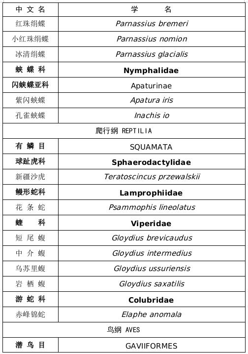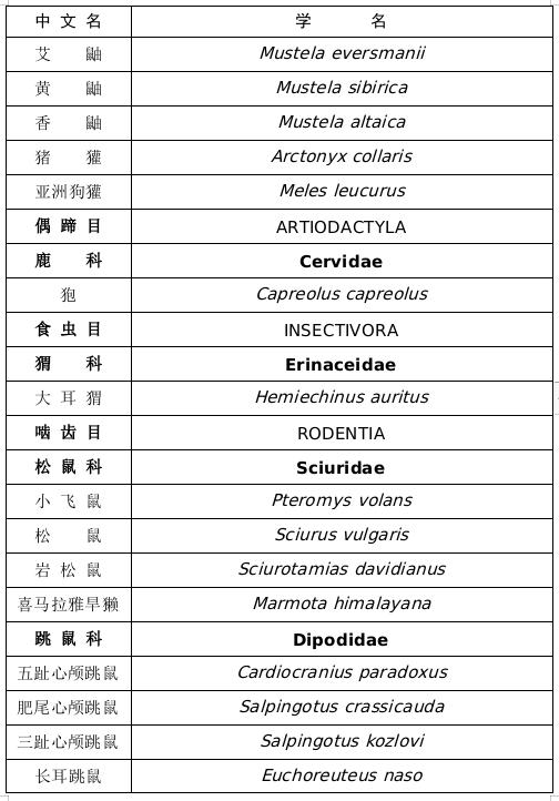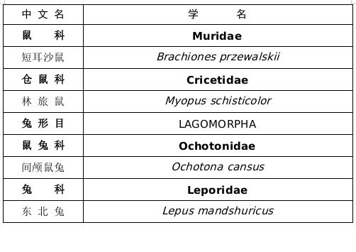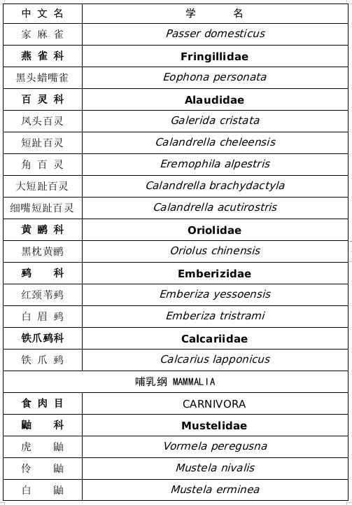 內(nèi)蒙古自治區(qū)重點保護陸生野生動物名錄