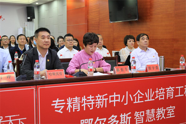 市工信局黨組成員、工業(yè)發(fā)展促進中心主任哈斯其勞出席啟動儀式,市工信局四級調(diào)研員郝宏豐在啟動儀式上致辭,她表示,智慧教室啟動只是鄂爾多斯市專精特新中小企業(yè)培育工程的第一步,我們要進一步豐富課程資源、創(chuàng)新培訓載體、發(fā)揮好、利用好“智慧課堂”,持續(xù)深入抓好企業(yè)經(jīng)營管理人才、領(lǐng)軍人才的培訓工作,努力領(lǐng)悟新思想、汲取新知識、學習新經(jīng)驗,帶動更多中小企業(yè)走“專精特新”發(fā)展之路,進一步推動鄂爾多斯經(jīng)濟實現(xiàn)高質(zhì)量發(fā)展。