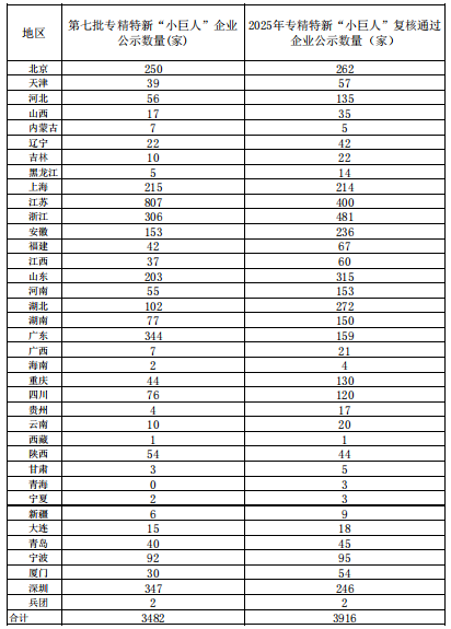 為深入貫徹習近平總書記關于激發(fā)涌現更多專精特新中小企業(yè)的重要指示批示精神,工業(yè)和信息化部開展了2025年專精特新“小巨人”企業(yè)認定和復核工作,已完成相關審核。10月20日,各地公示了第七批專精特新“小巨人”企業(yè)和2025年專精特新“小巨人”復核通過企業(yè)名單。