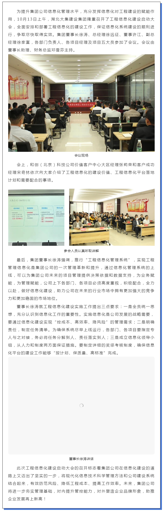 開啟信息化建設(shè) 實現(xiàn)精細化管理|湖北大集建設(shè)集團工程信息化建設(shè)啟動大會順利召開