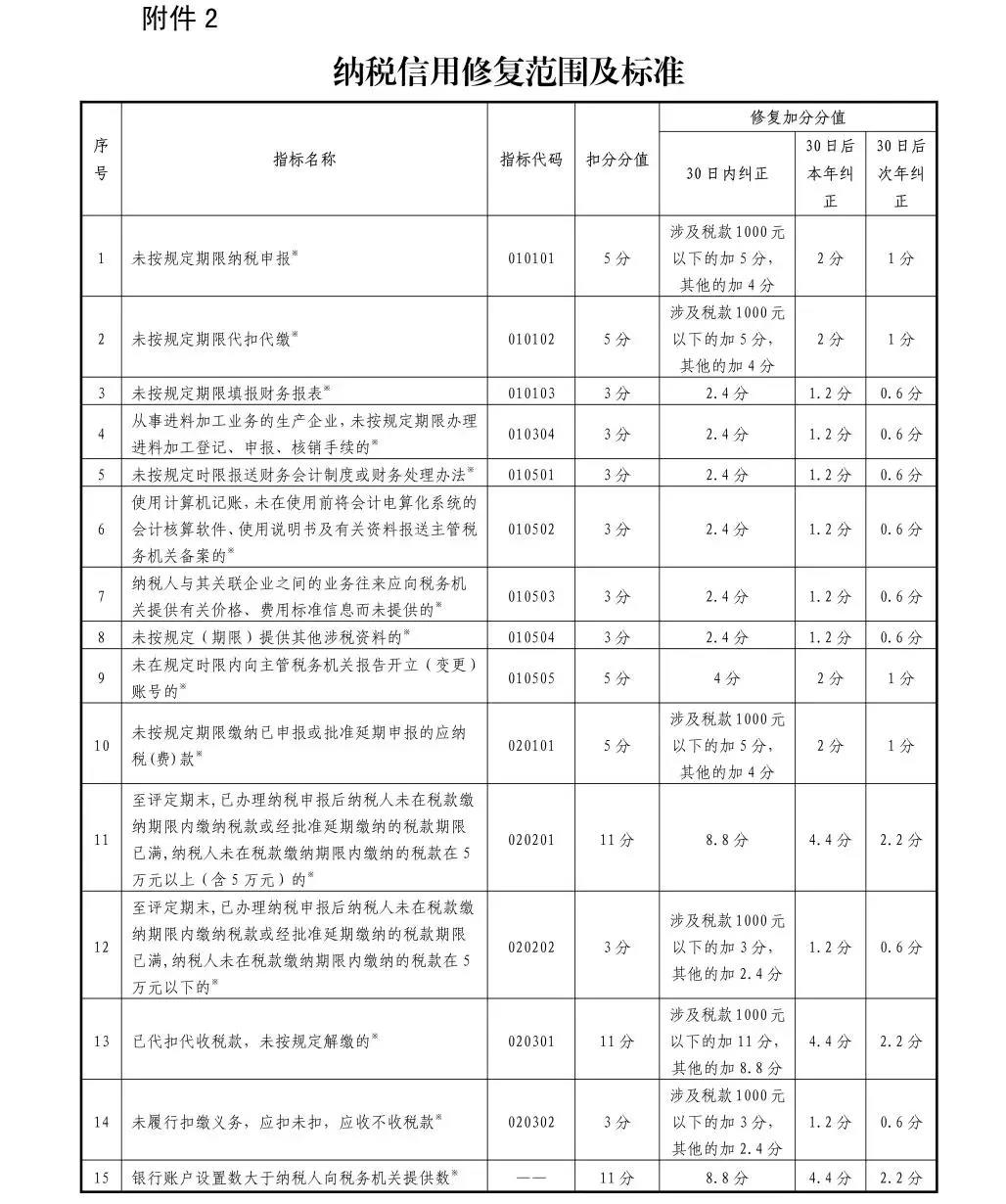 二、符合《國家稅務(wù)總局關(guān)于納稅信用修復(fù)有關(guān)事項(xiàng)的公告》(2019年第37號(hào))所列條件的納稅人,其納稅信用級(jí)別及失信行為的修復(fù)仍從其規(guī)定。
