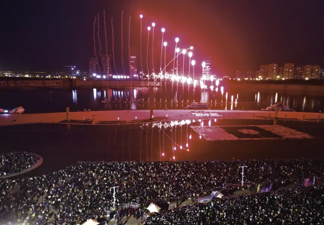 鄂爾多斯市康巴什旅游區(qū)推出的焰火噴泉表演深受游客喜愛。