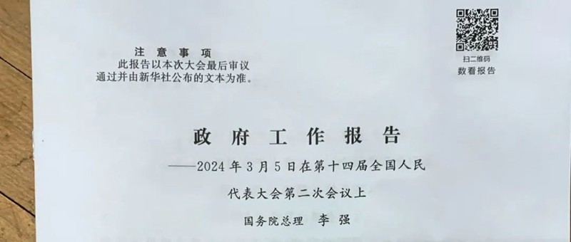 今天上午,李強(qiáng)總理在人民大會堂作政府工作報(bào)告。報(bào)告首頁右上角,有一枚二維碼。里面有哪些內(nèi)容,掃碼看——