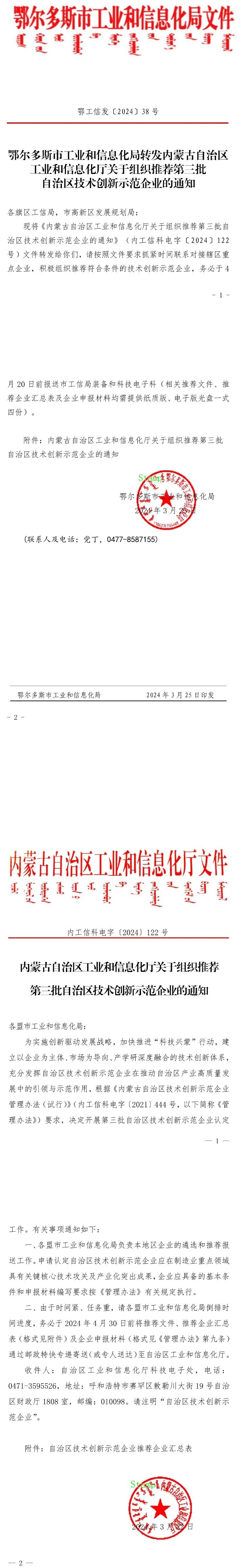 鄂爾多斯市工業(yè)和信息化局轉發(fā)內(nèi)蒙古自治區(qū)工業(yè)和信息化廳關于組織推薦第三批自治區(qū)技術創(chuàng)新示范企業(yè)的通知