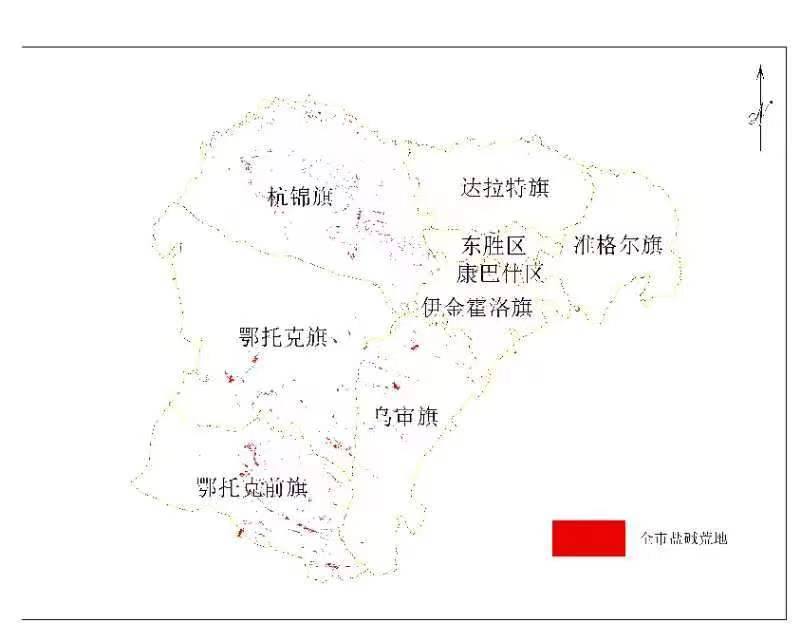 圖2 鄂爾多斯市鹽堿荒地分布圖