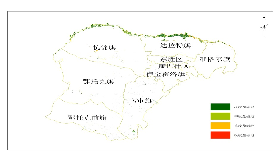 圖1 鄂爾多斯市鹽堿耕地分布圖