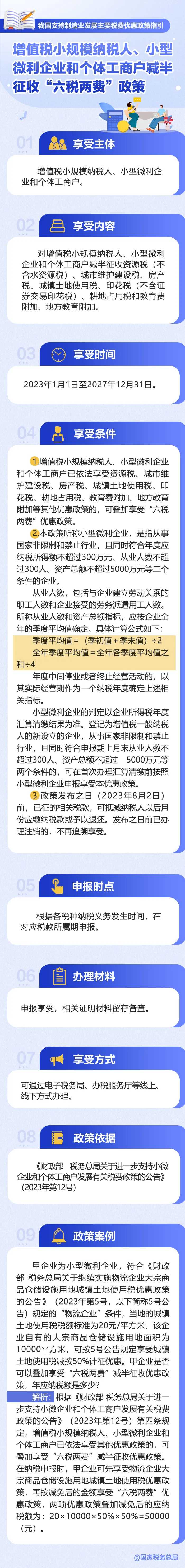 制造業(yè)是立國之本、強(qiáng)國之基,是實(shí)體經(jīng)濟(jì)的重要組成部分。中央經(jīng)濟(jì)工作會(huì)議指出,“落實(shí)好結(jié)構(gòu)性減稅降費(fèi)政策,重點(diǎn)支持科技創(chuàng)新和制造業(yè)發(fā)展”。為使大家更加全面熟悉了解政策、更加高效準(zhǔn)確適用政策,財(cái)政部、國家稅務(wù)總局近日發(fā)布《我國支持制造業(yè)發(fā)展主要稅費(fèi)優(yōu)惠政策指引》。今天帶你了解:增值稅小規(guī)模納稅人、小型微利企業(yè)和個(gè)體工商戶減半征收“六稅兩費(fèi)”政策↓