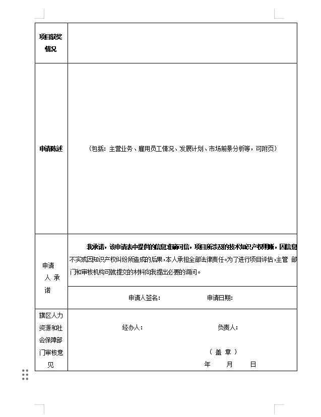 1)《鄂爾多斯市大學(xué)生創(chuàng)業(yè)項(xiàng)目資助滾動(dòng)支持申請(qǐng)表》;