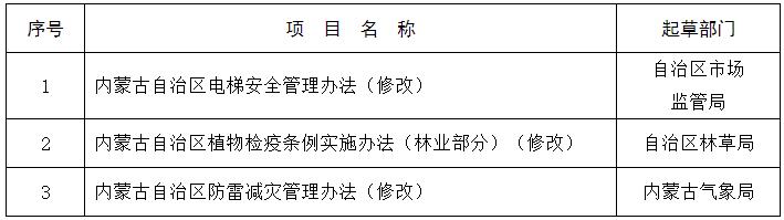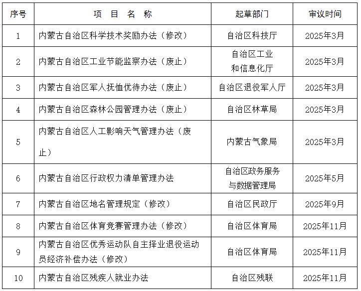 內(nèi)蒙古自治區(qū)2025年政府規(guī)章立法計劃審議項目(10件)