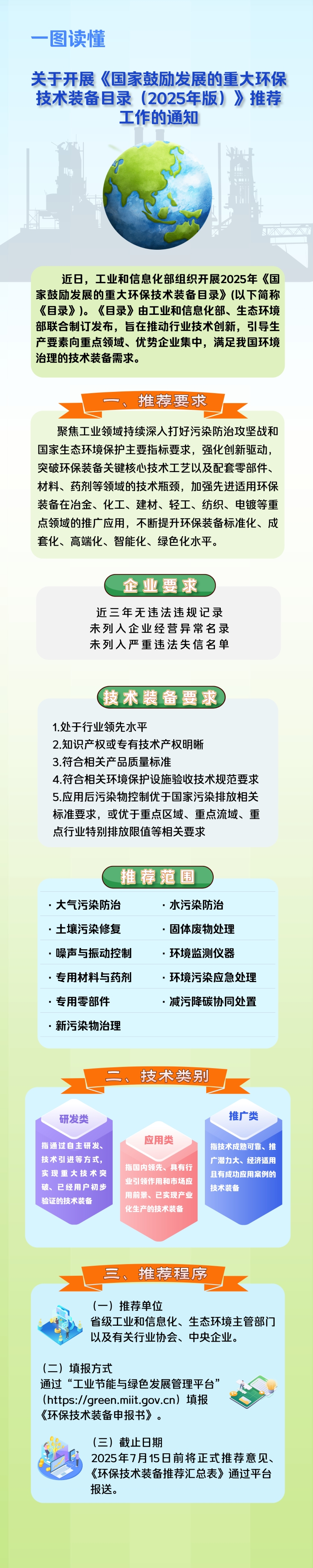 一圖讀懂《關(guān)于開展2025年國家鼓勵(lì)發(fā)展的重大環(huán)保技術(shù)裝備推薦工作的通知》
