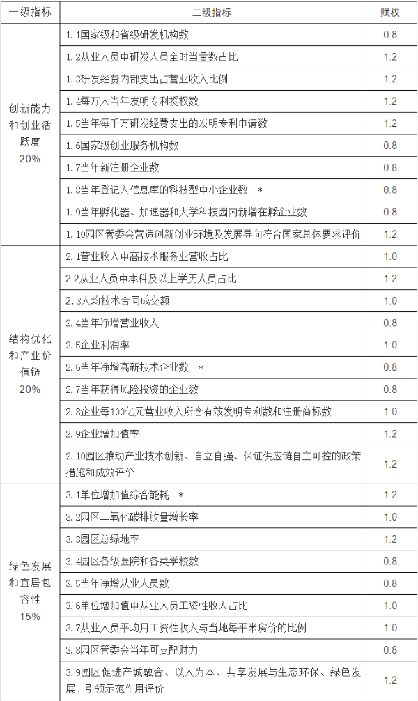 國家高新技術(shù)產(chǎn)業(yè)開發(fā)區(qū)綜合評價指標(biāo)體系