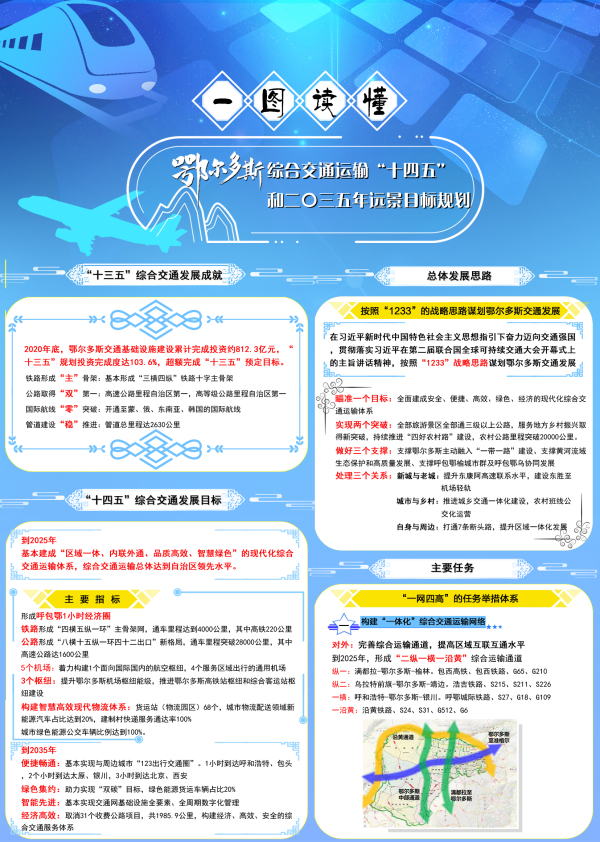 一圖讀懂:鄂爾多斯綜合交通運(yùn)輸“十四五”和二〇三五年遠(yuǎn)景目標(biāo)規(guī)劃