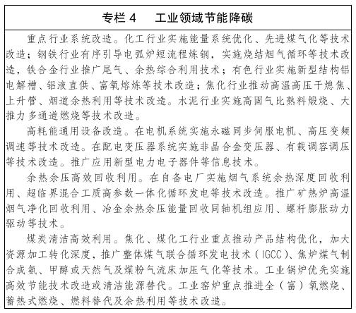 推進(jìn)園區(qū)和重點(diǎn)行業(yè)二氧化碳排放達(dá)峰。推進(jìn)部分園區(qū)率先達(dá)峰,全區(qū)低碳工業(yè)園區(qū)試點(diǎn)、高新技術(shù)工業(yè)園區(qū)、循環(huán)經(jīng)濟(jì)示范園區(qū)、生態(tài)工業(yè)示范園區(qū)、循環(huán)化改造園區(qū)等力爭在2025年前實(shí)現(xiàn)達(dá)峰。重點(diǎn)控制六大高耗能行業(yè)二氧化碳排放,力爭鋼鐵、水泥、電解鋁、傳統(tǒng)化工等行業(yè)盡早實(shí)現(xiàn)達(dá)峰。鼓勵(lì)其他行業(yè)和大型企業(yè)制定達(dá)峰行動(dòng)方案。加大對(duì)企業(yè)低碳技術(shù)創(chuàng)新的支持力度,鼓勵(lì)企業(yè)按照《國家重點(diǎn)推廣的低碳技術(shù)目錄》選擇適宜技術(shù)進(jìn)行升級(jí)改造。