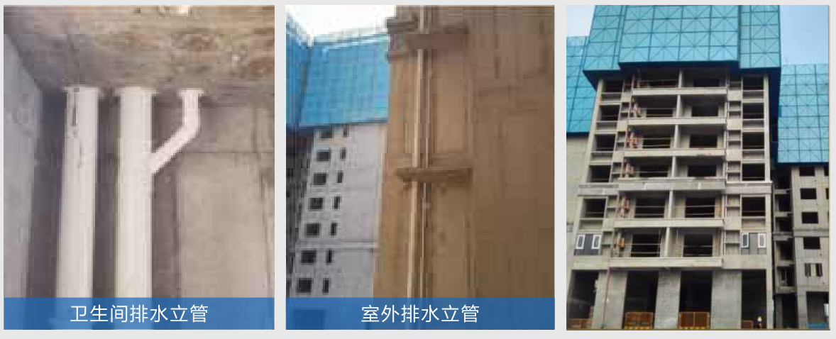 本工程進(jìn)行流水交叉同步作業(yè),室內(nèi)排水及室外排水直接進(jìn)行預(yù)埋安裝,讓砼直接包裹住止水環(huán),不留冷縫,減少日后滲漏之風(fēng)險(xiǎn)。實(shí)現(xiàn)了一步到位,加快施工進(jìn)度,降低成本,可提前插入精裝修作業(yè),實(shí)現(xiàn)了流水作業(yè)。